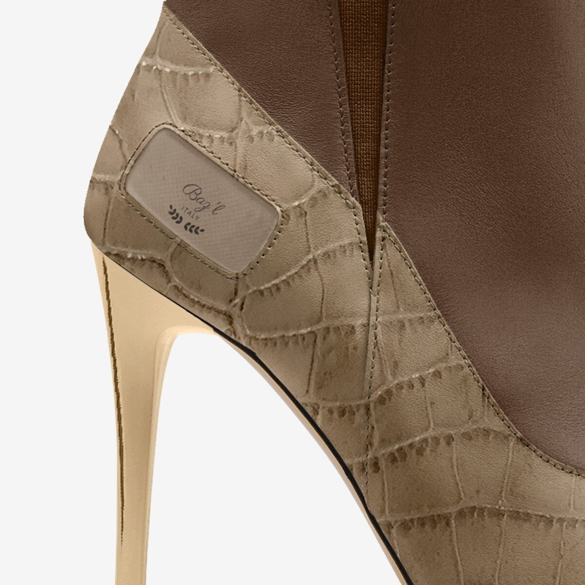 Elevate your presence with the Donna Heeled Bootie — a bold fusion of refined sophistication and commanding edge. Handcrafted in Italy from supple, premium-grade Italian leather, this sculptural silhouette exudes elegance with every step. The sleek pointed toe and seamless contours hug the foot with precision, while the slender stiletto heel, finished in a contrasting tone, adds a modern twist to timeless luxury.