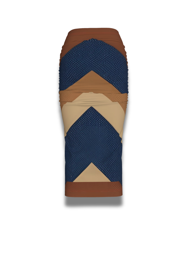 This midi-length silhouette hugs the hips and tapers just below the knee, creating a sleek profile that elongates the legs. A subtle high waist smooths the midsection and offers versatility in styling — wear it with a cropped top, tucked blouse, or matching halter for a set that transitions from day to night with intention.